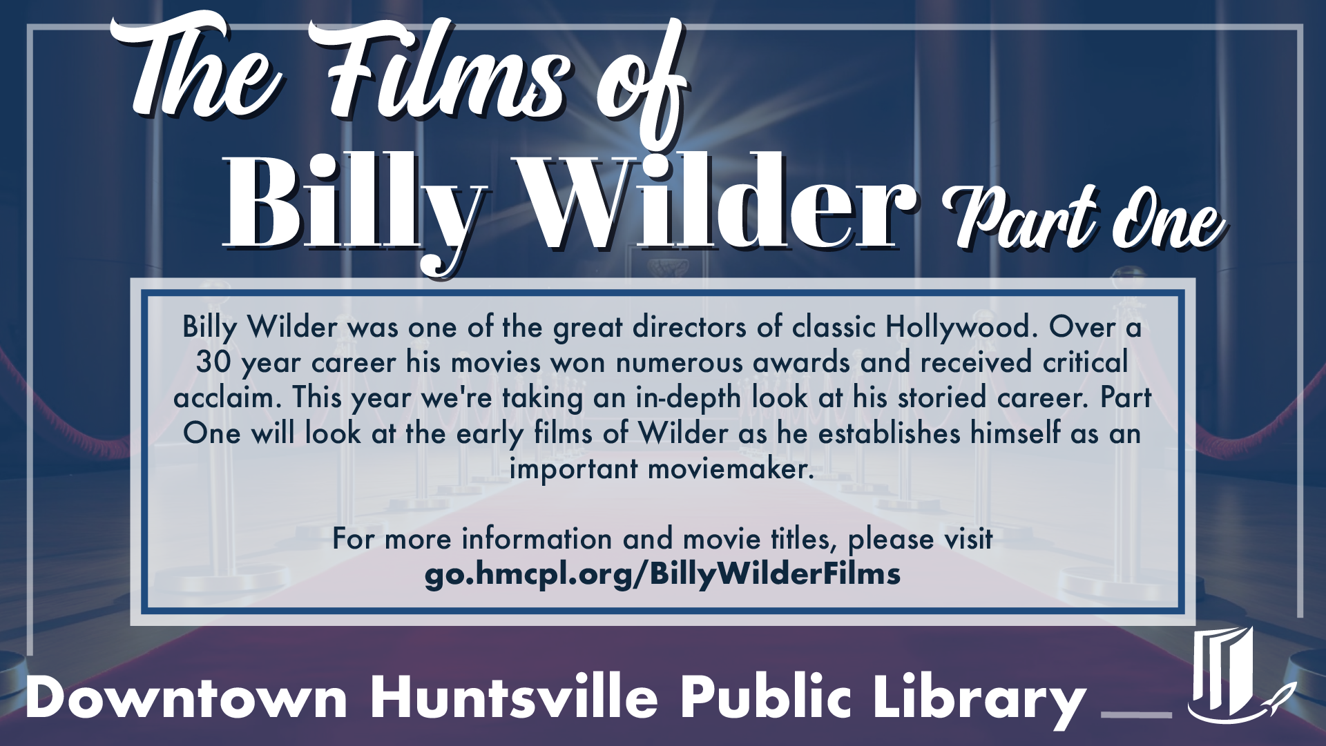 For more information and movie titles, please visit go.hmcpl.org/BillyWilderFilms